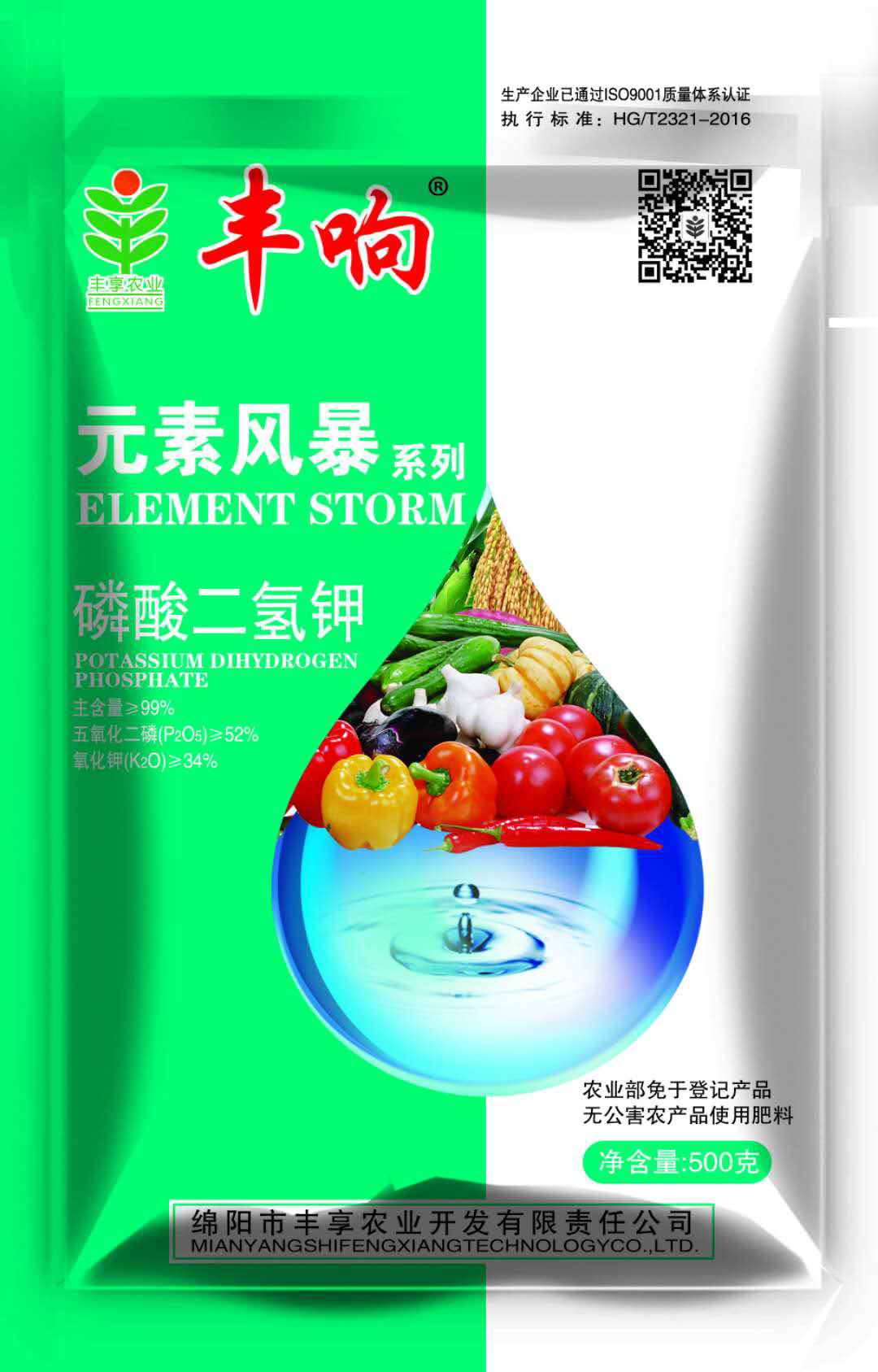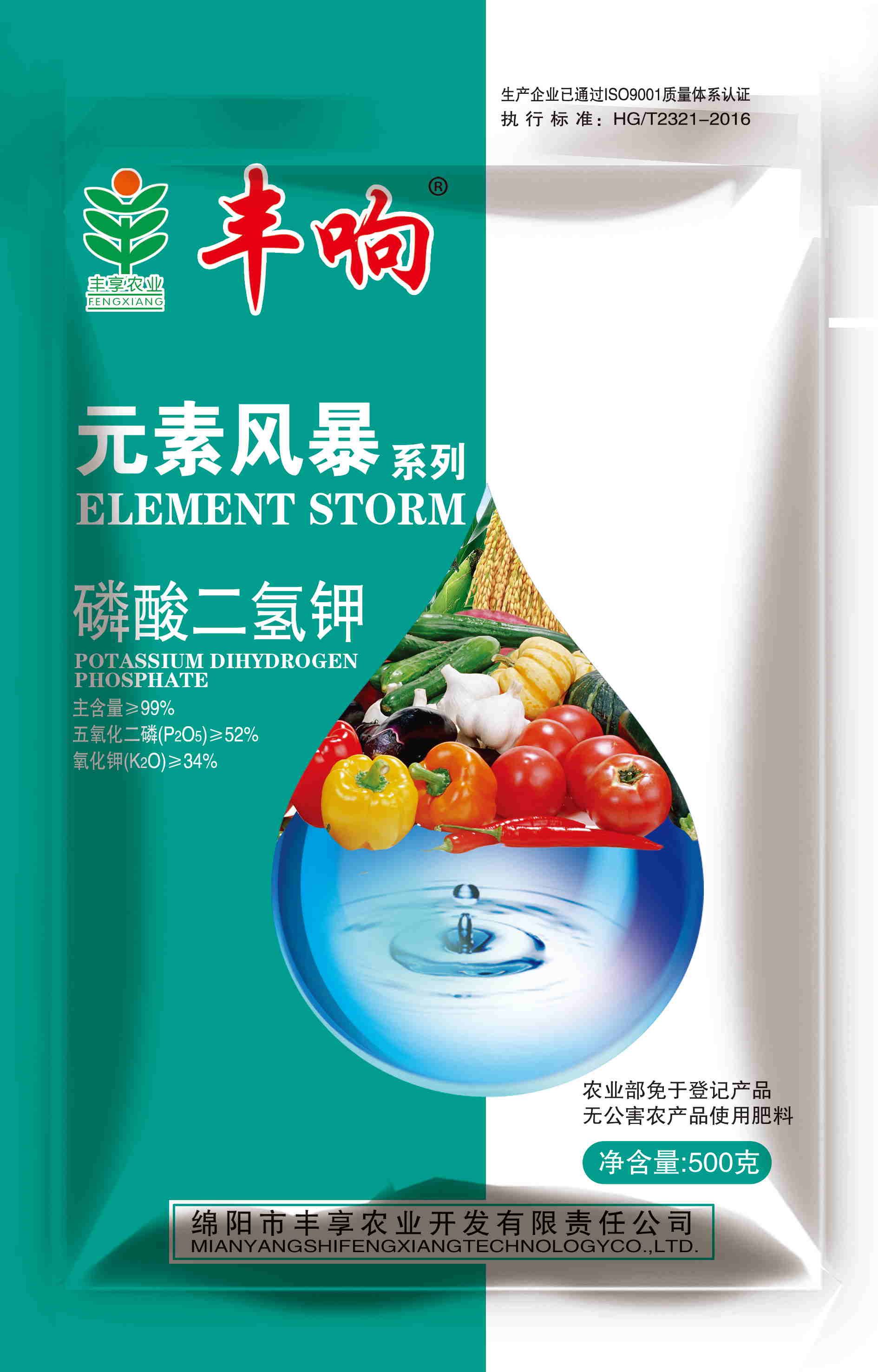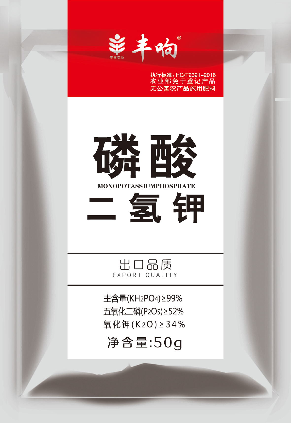 執行標準HG/T2321-2016,豐響熱法99%高品質磷酸二氫鉀。能有效為植物提供速效磷鉀,壯根、狀桿、抗旱、抗寒、抗逆、抗倒伏、促花、保花、保果、改善品質、提高產量。